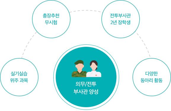 - 의무부사관 직무수행에 요구되는 기반지식을 습득한 후 전문실습 교육과 의무행정 및 약제업무 교육 등을 통해 현장 실무중심의 술기와 응급구조 능력 함양 교육